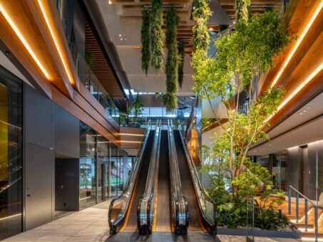 ―渋谷ヒカリエからの回遊性が高く、喧騒とは一線を画したリラックスできる雰囲気が印象的でした。特に1階から2階まで繋がっている屋内のアトリウムでは木々が配置されており、憩いの場になっていました。